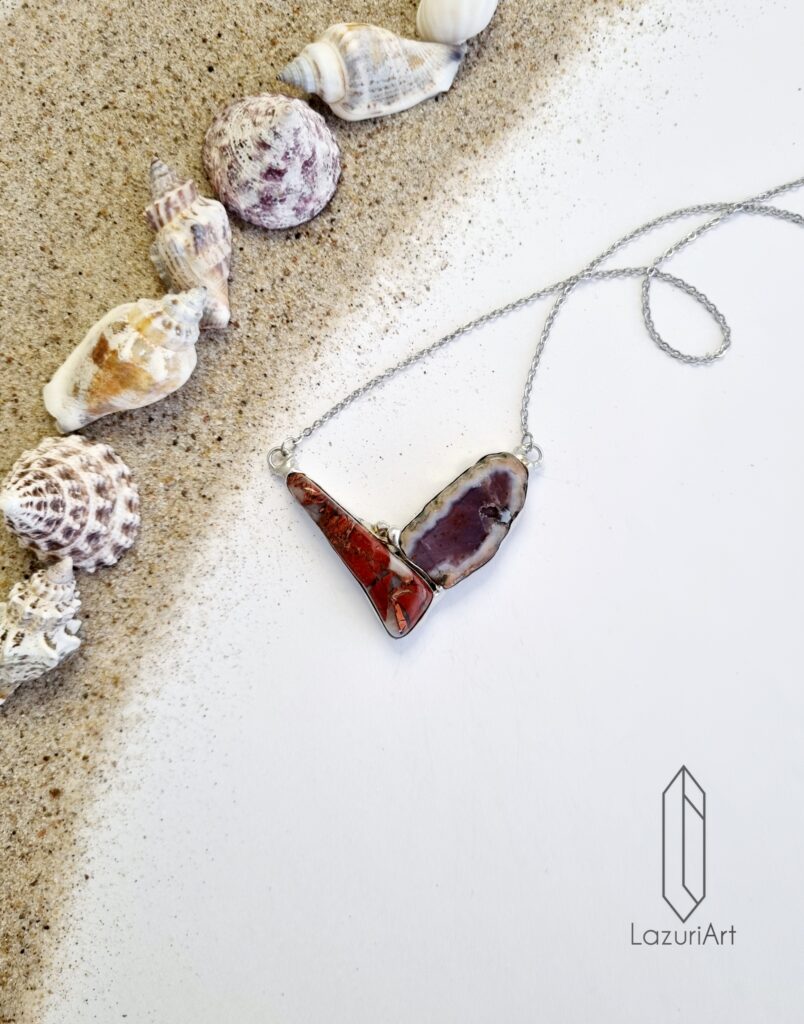 23158 Naszyjnik z Agatem Mozaikowym i Jaspisem
