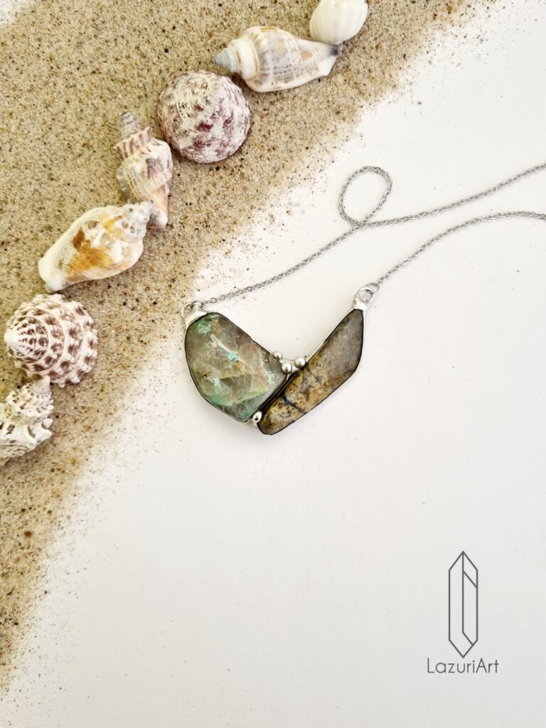 25021 Naszyjnik z Dumortierytem, Amazonitem i Labradorytem